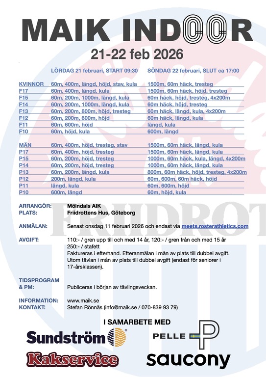 MAIK INDOOR 6-7 MARS 2021! - OBS! TÄVLINGEN INSTÄLLD!!